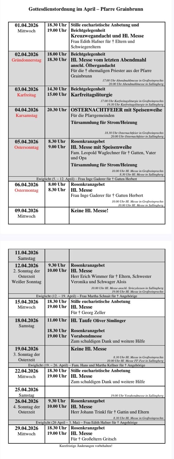 Herzlich Willkommen auf der Webseite der Pfarre Grainbrunn!